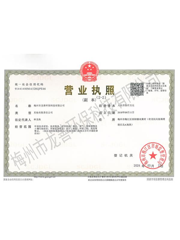 梅州市龍善環(huán)保科技有限公司為龍善環(huán)保股份有限公司(簡稱“龍善環(huán)保”)子公司。龍善環(huán)保于1995年12月成立,注冊資本為人民幣6,000萬元,總部位于深圳市南山區(qū)月亮灣大道2078號兆龍大樓16層。公司經(jīng)生態(tài)環(huán)境部、廣東省生態(tài)環(huán)境廳、深圳市生態(tài)環(huán)境局、深圳市交通運輸委員會、深圳海事局等部門許可專業(yè)從事陸地和海洋環(huán)境保護產(chǎn)業(yè)的高科技民營企業(yè),主要經(jīng)營業(yè)務包括工業(yè)廢物收運、資源化利用和無害化處理處置、海洋船舶污油水接收和集中處理處置、突發(fā)環(huán)境事故清污應急處置等......